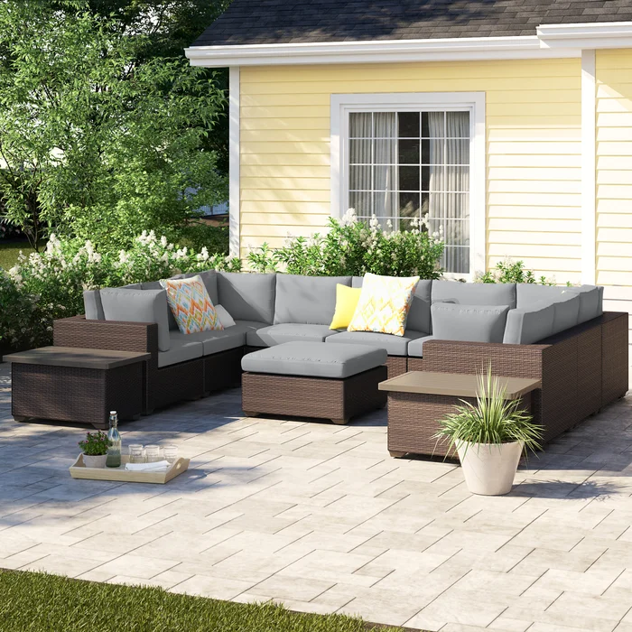The heart of my outdoor oasis is the Lark Manor Anishia 12-Piece Sectional Seating Group with Cushions from Wayfair. Each piece is a canvas of comfort, beckoning me to unwind and soak in the beauty of the great outdoors. As I sink into the plush cushions, the sectional becomes more than just furniture – it becomes a retreat, a space to connect with nature and share moments with loved ones.